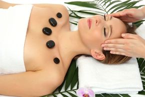 one hour Stone Massage. Or, the Stone Facial Clenz & Body Massage, a 90-minute version. Stone Facial includes basic cleansing, a hot steamed towel & facial massage with a series of 6 small heated Basalt Stones followed with 3 sets of chilled white Marble Stones. The basic Stone Massage includes legs, feet, arms, hands, neck & shoulder. Service concludes with an invigorating upper and low back massage. Suitable for women and men.